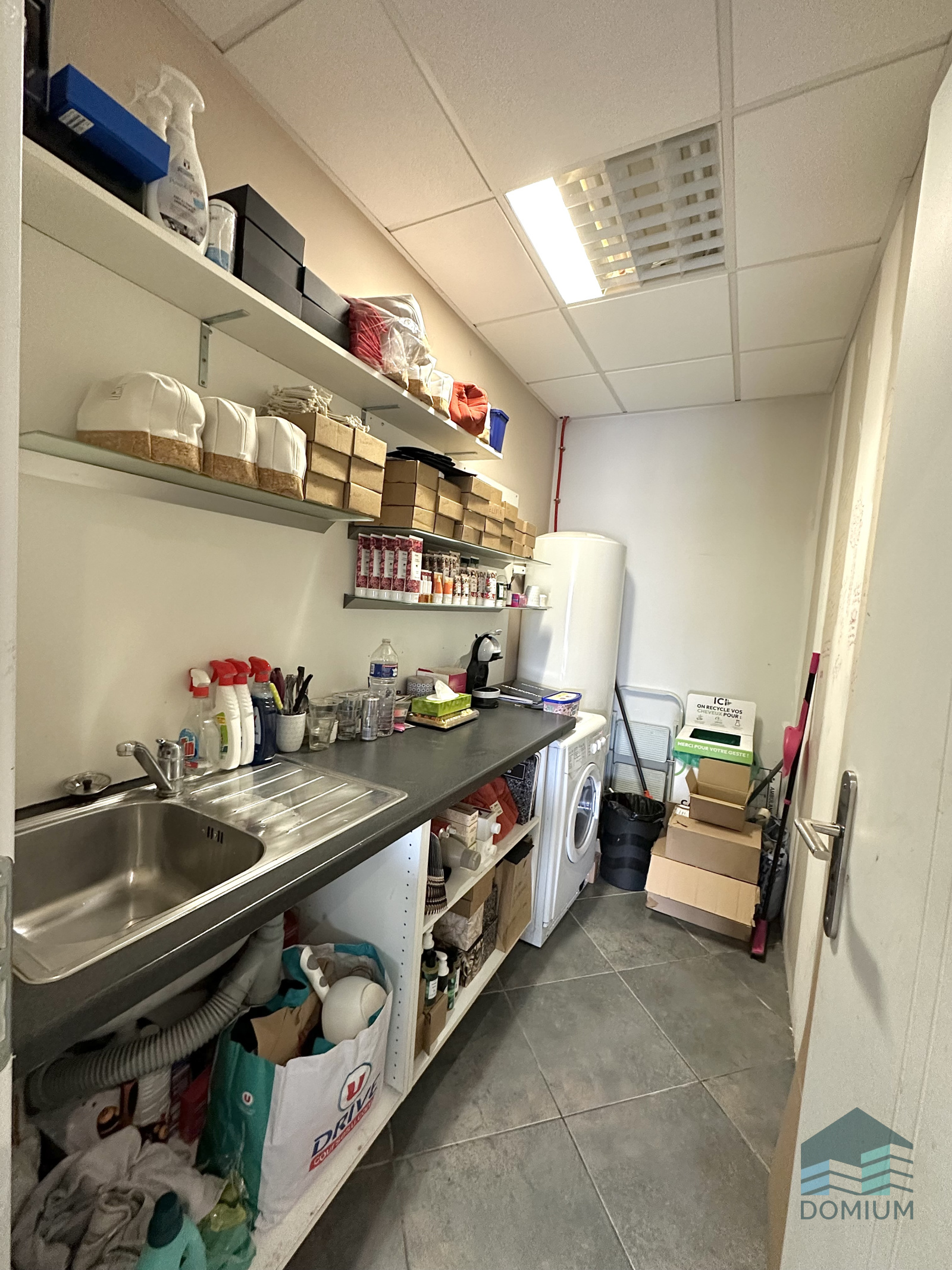 Le local fait 54m², il est composé d'une pièce principale, d'un coin cuisine, deux pièces d'environ 10m² et un toilette séparé.