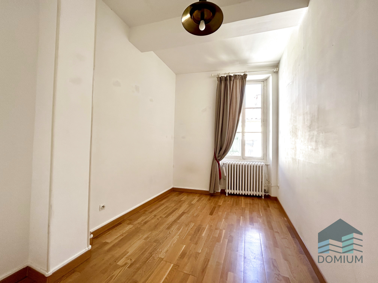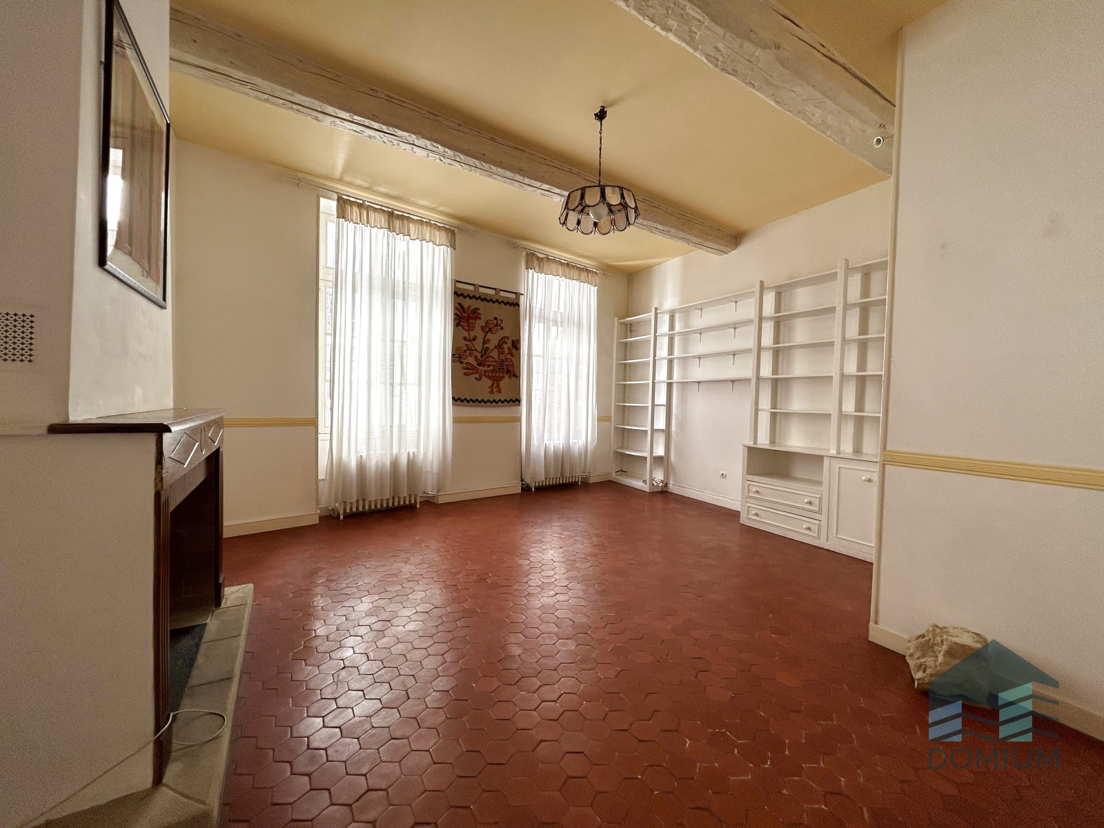 Au premier étage, la pièce de vie est baignée de lumière grâce à ses nombreuses ouvertures. L'une d'entre elles permet d'accéder à une terrasse et une cour de 60m² chacune. Cette terrasse est exposée Sud avec une vue sur la cathédrale Saint-Nazaire qui vous donne l'impression de pouvoir la toucher du bout des doigts.