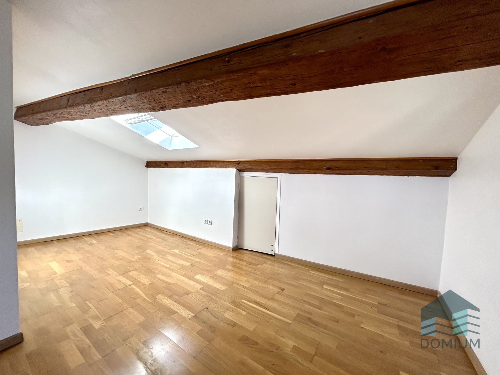 Un dernier étage mansardé faisant office de chambre, avec un espace supplémentaire à aménager.