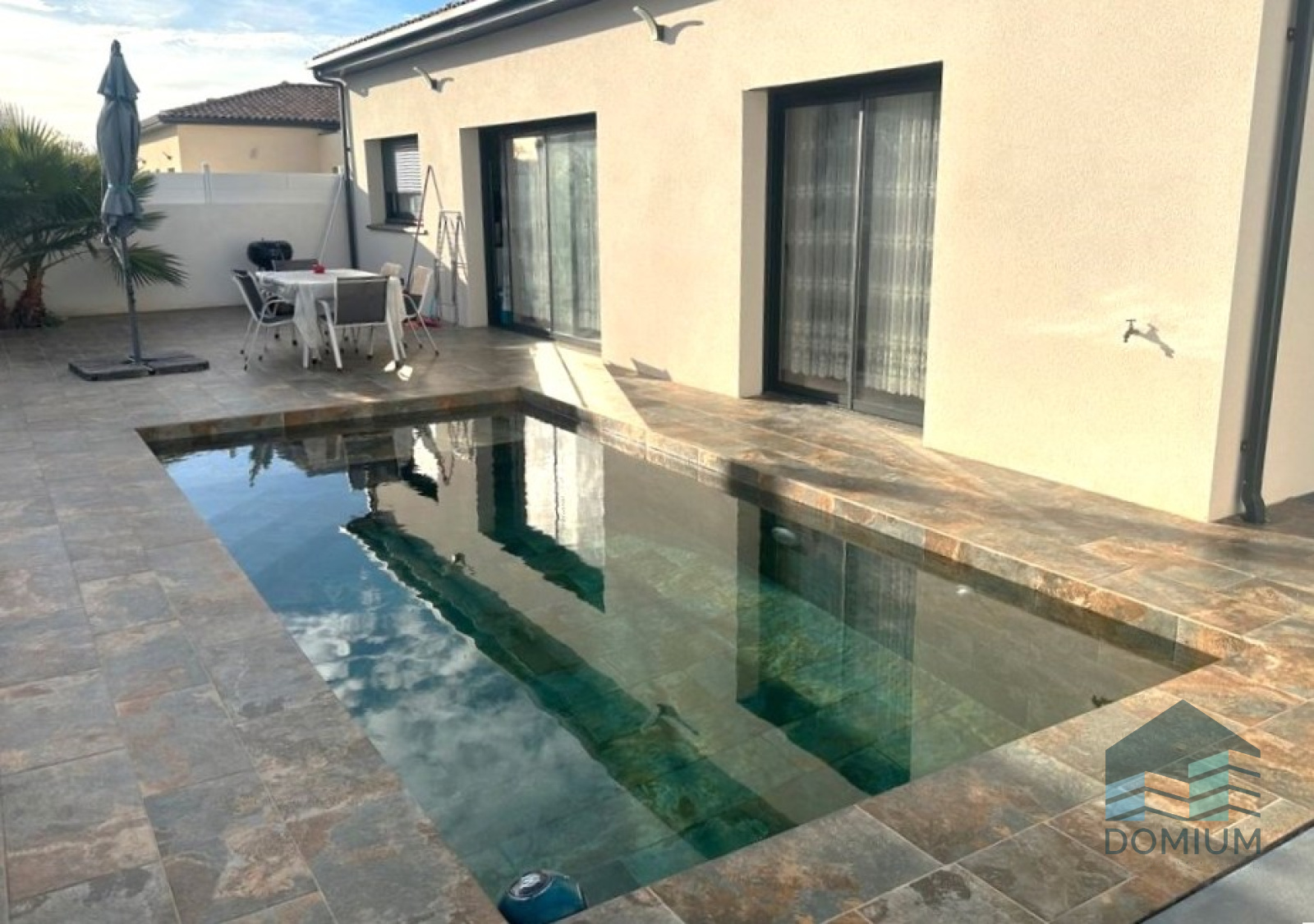 À Béziers, dans un quartier agréable non loin des commerces et de la rocade, nous vous proposons cette Villa T4 exposée sur 3 faces en Plain Pied d'une surface habitable de 120 m² sur une parcelle de terrain de 348 m². Elle se compose d'une belle entrée avec placard donnant sur un grand séjour / cuisine équipée de 60 m², de 3 belles chambres et de deux salles d'eau. Côté parking, la villa possède un garage ainsi que d'une place de parking privative. Elle dispose d'une terrasse exposée plein sud-ouest avec piscine de construction traditionnelle en pierre de Bali. Un bien de qualité, aux belles prestations. Votre agence DOMIUM IMMOBILIER a hâte de vous la faire découvrir.