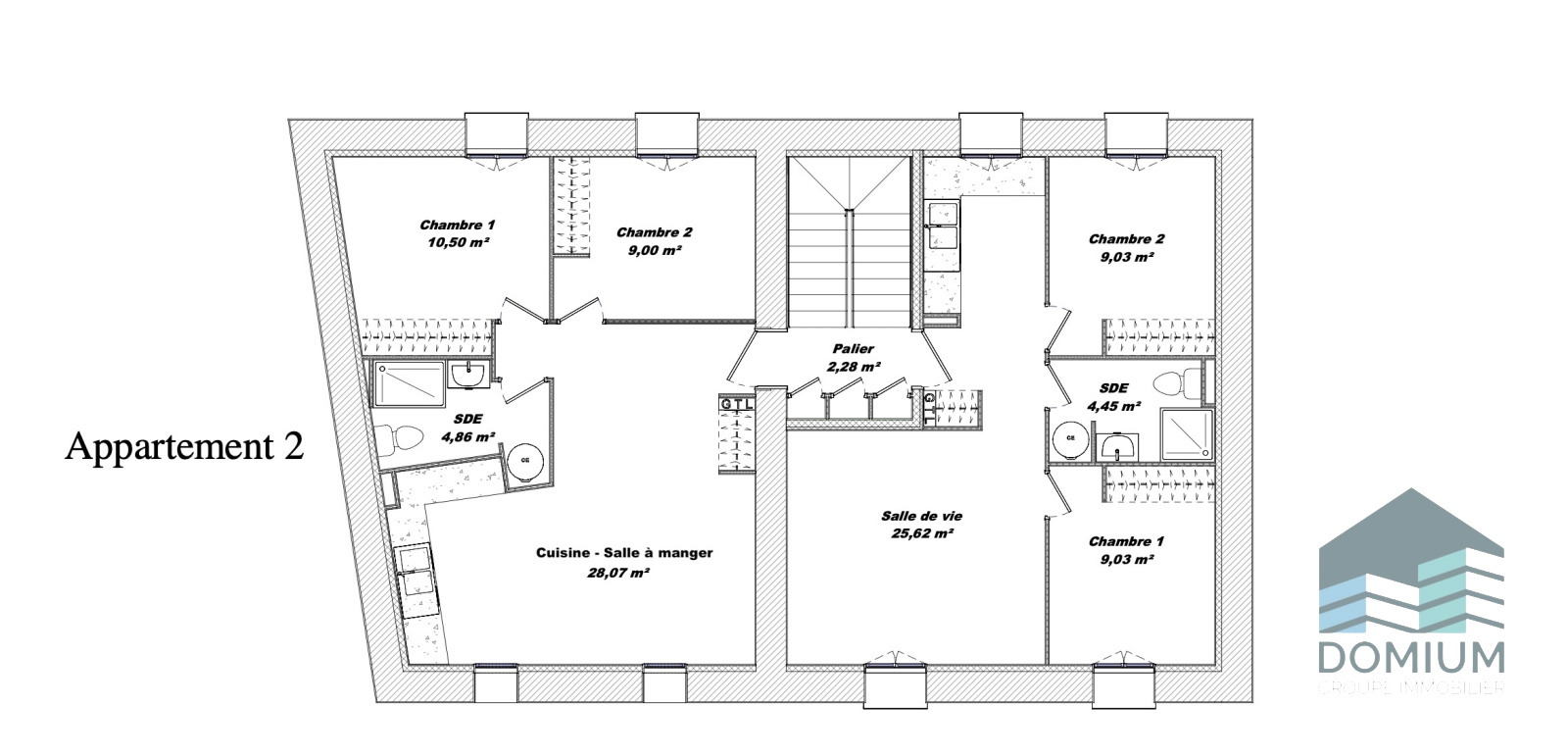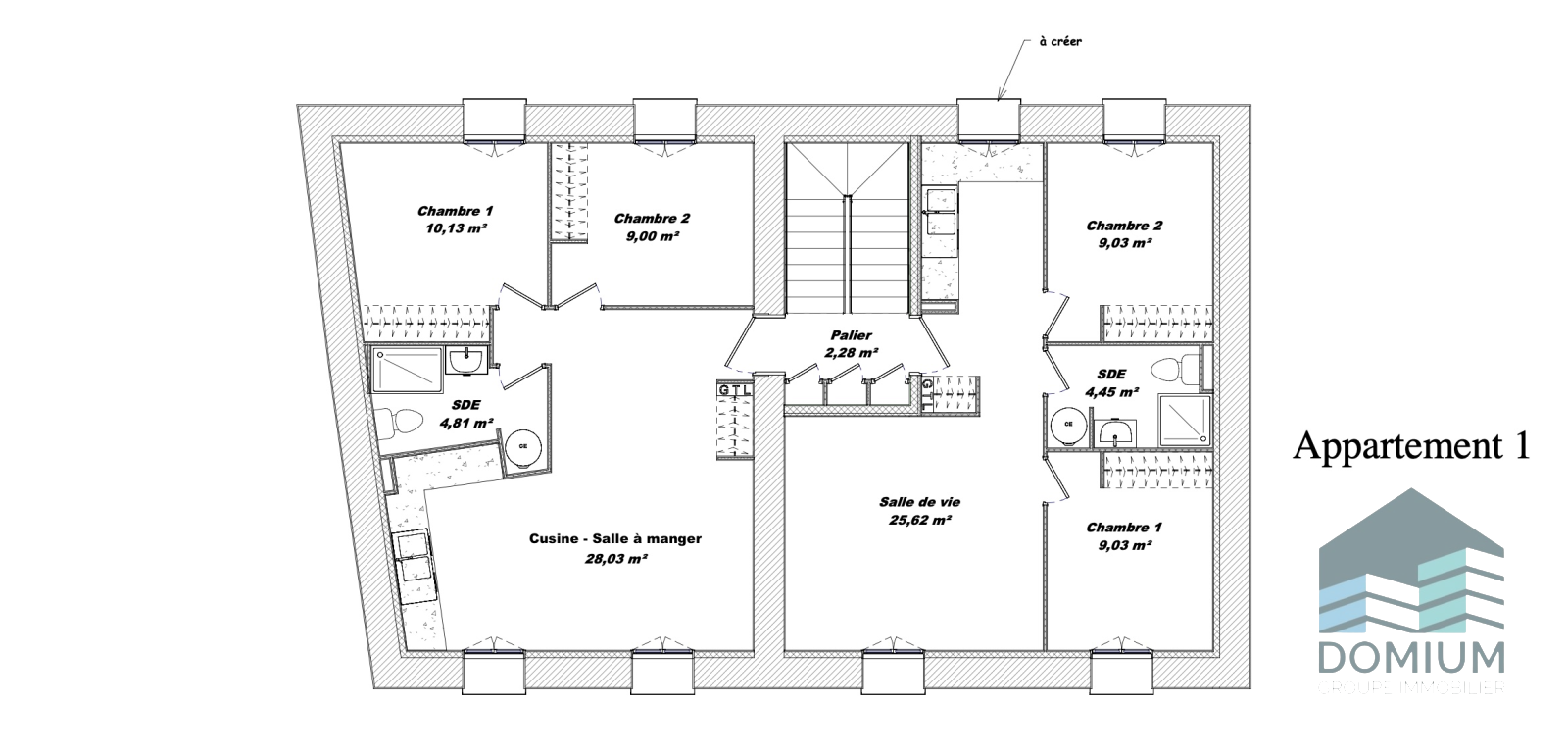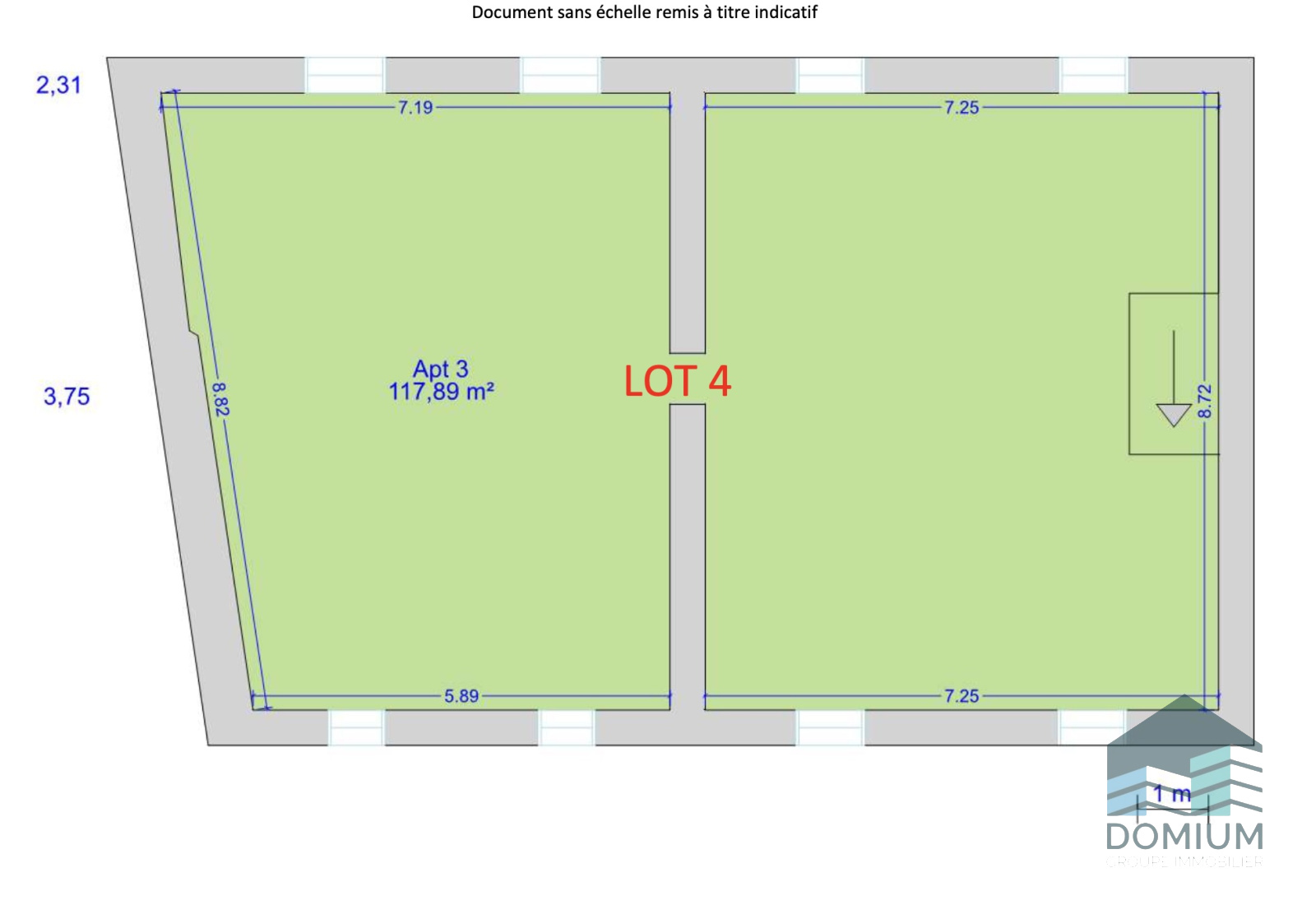 Deuxième étage : un second plateau de 118 m², également aménageable en appartement T5. (lot n°4)