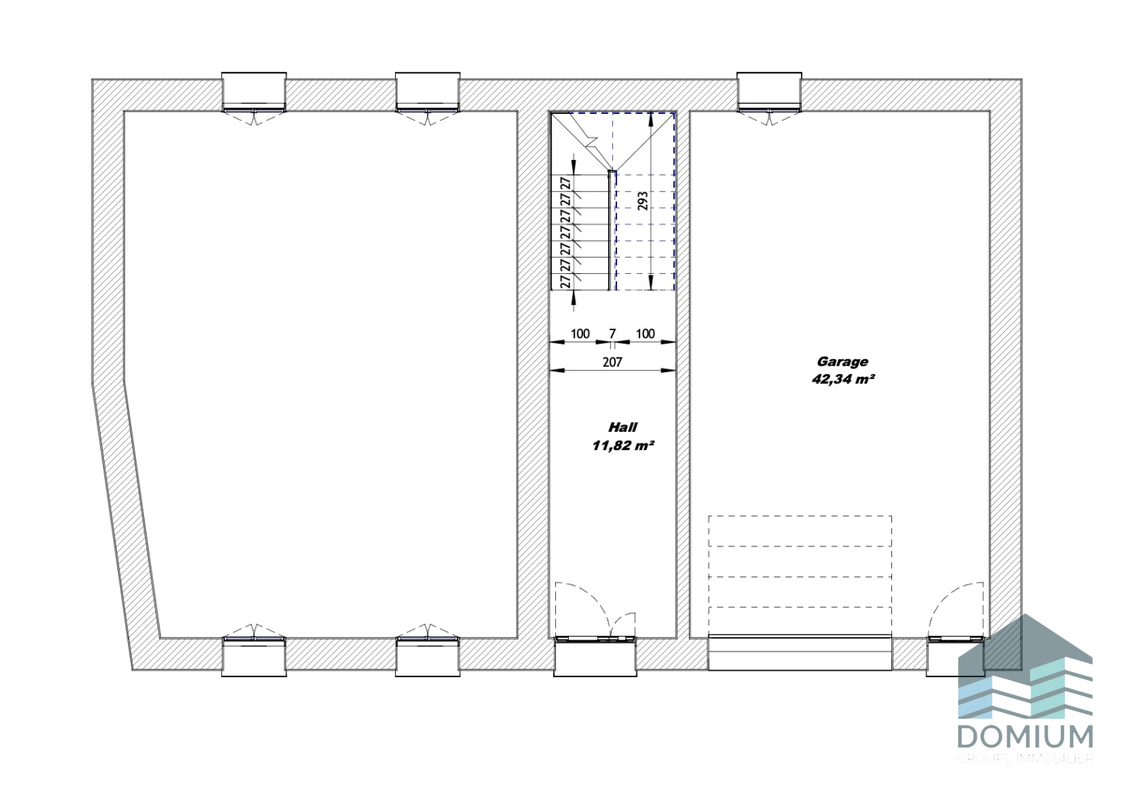 Rez-de-chaussée : un premier lot de plus de 42 m², pouvant être aménagé en deux box ou en garage. (lot n°2)