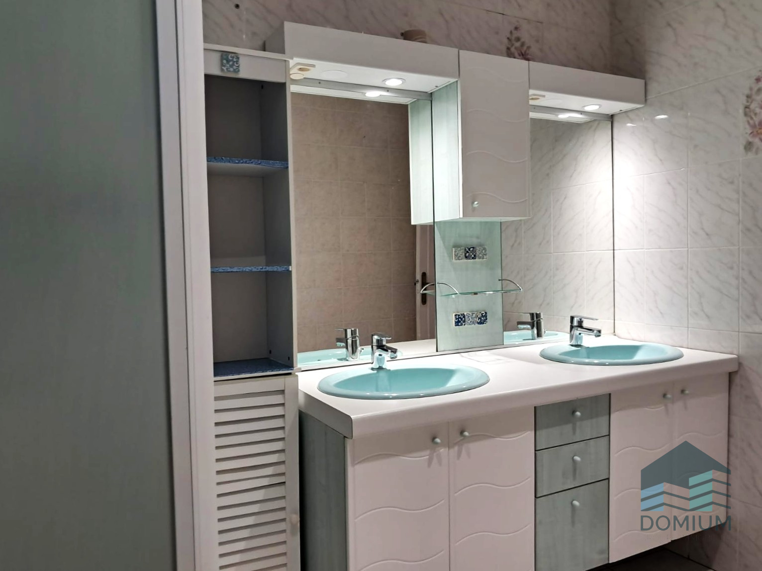 Une salle d'eau double vasque et son wc indépendant.