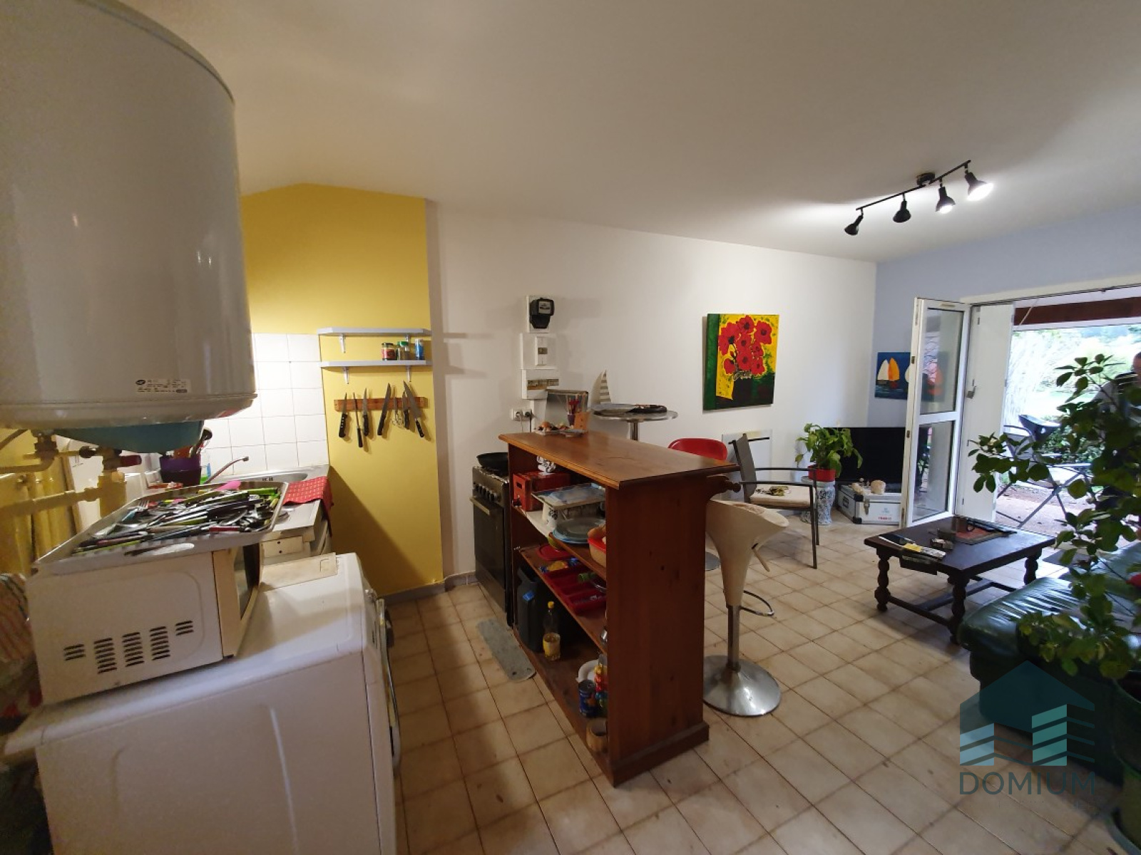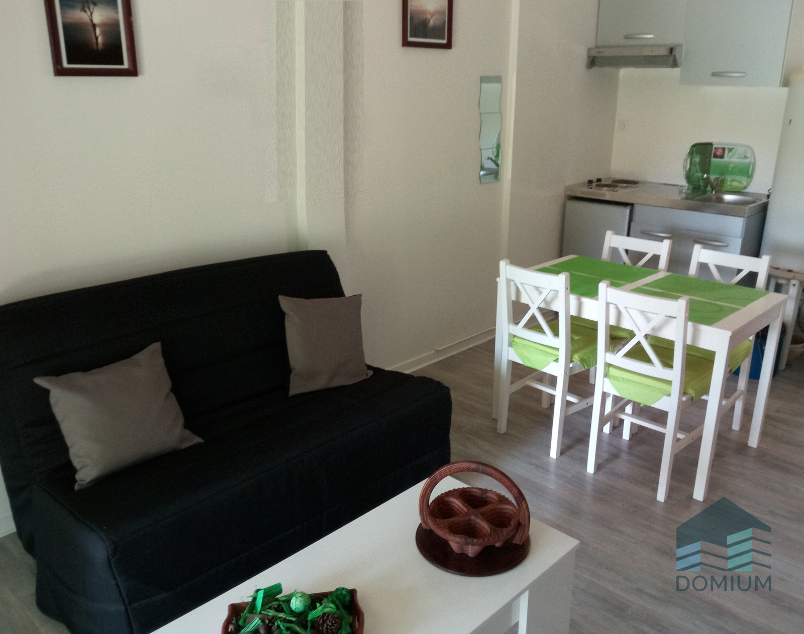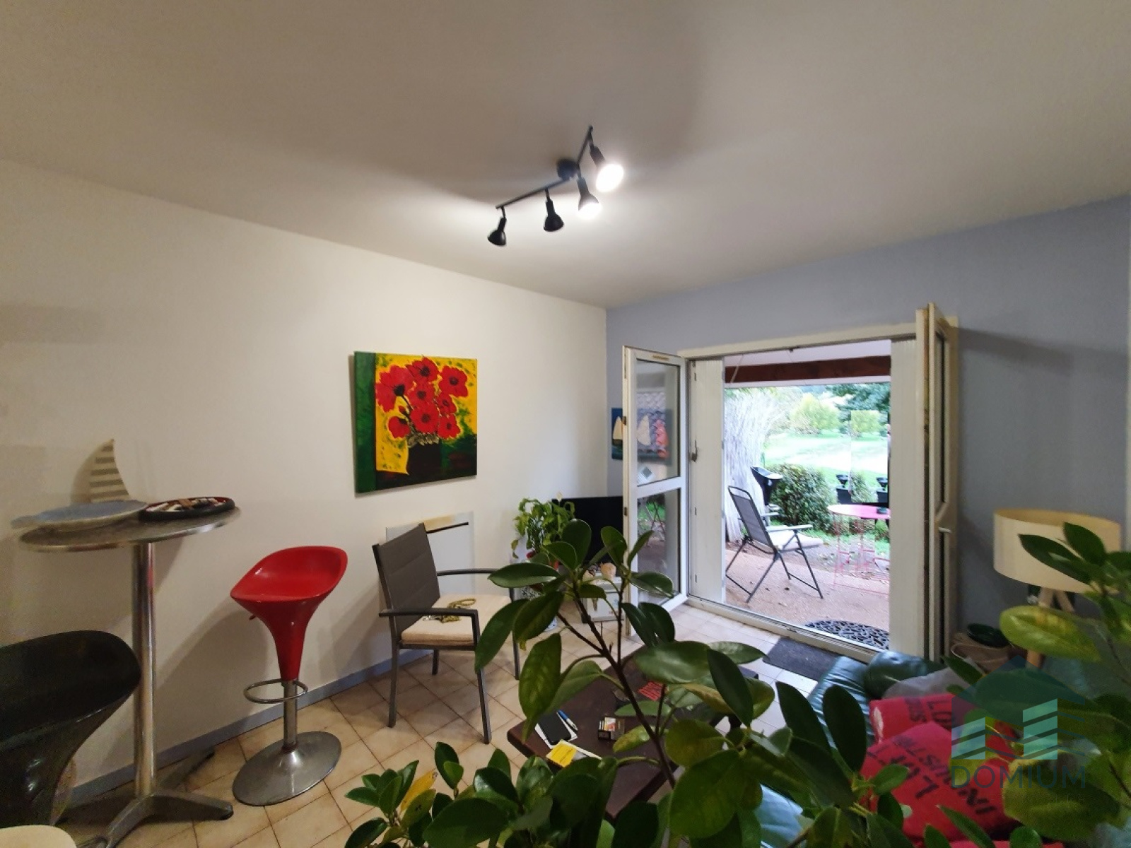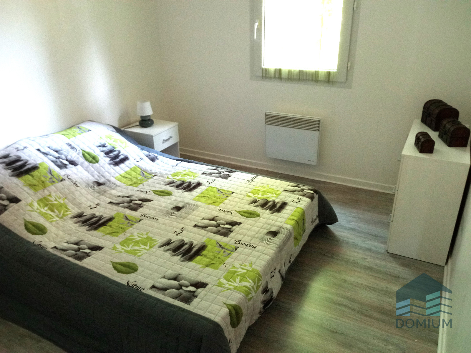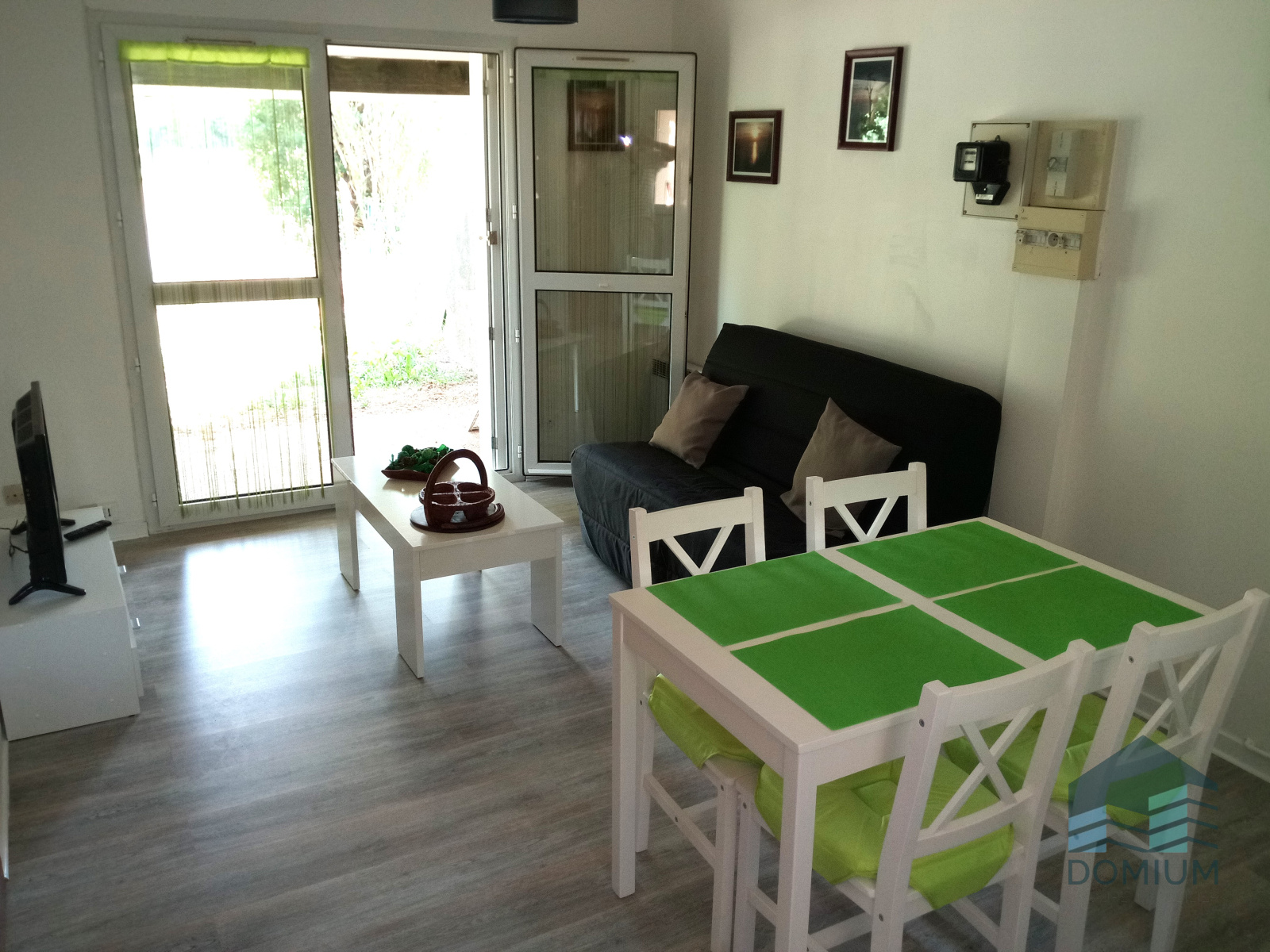 1 Séjour avec kitchenette équipée, 1 chambre, 1 dégagement avec placard donnant accès à la salle d'eau et au WC séparé, 1 terrasse couverte et son terrain individuel.